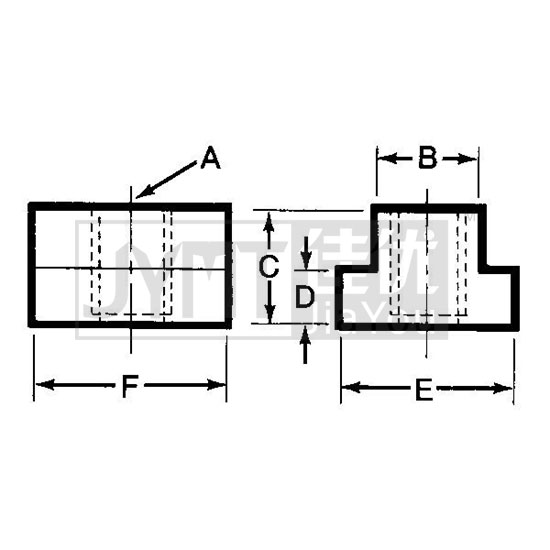 A: 螺紋尺寸B: T型槽C: 全高D: T型大頭部分高度E: T型大頭部分寬度F: 全長